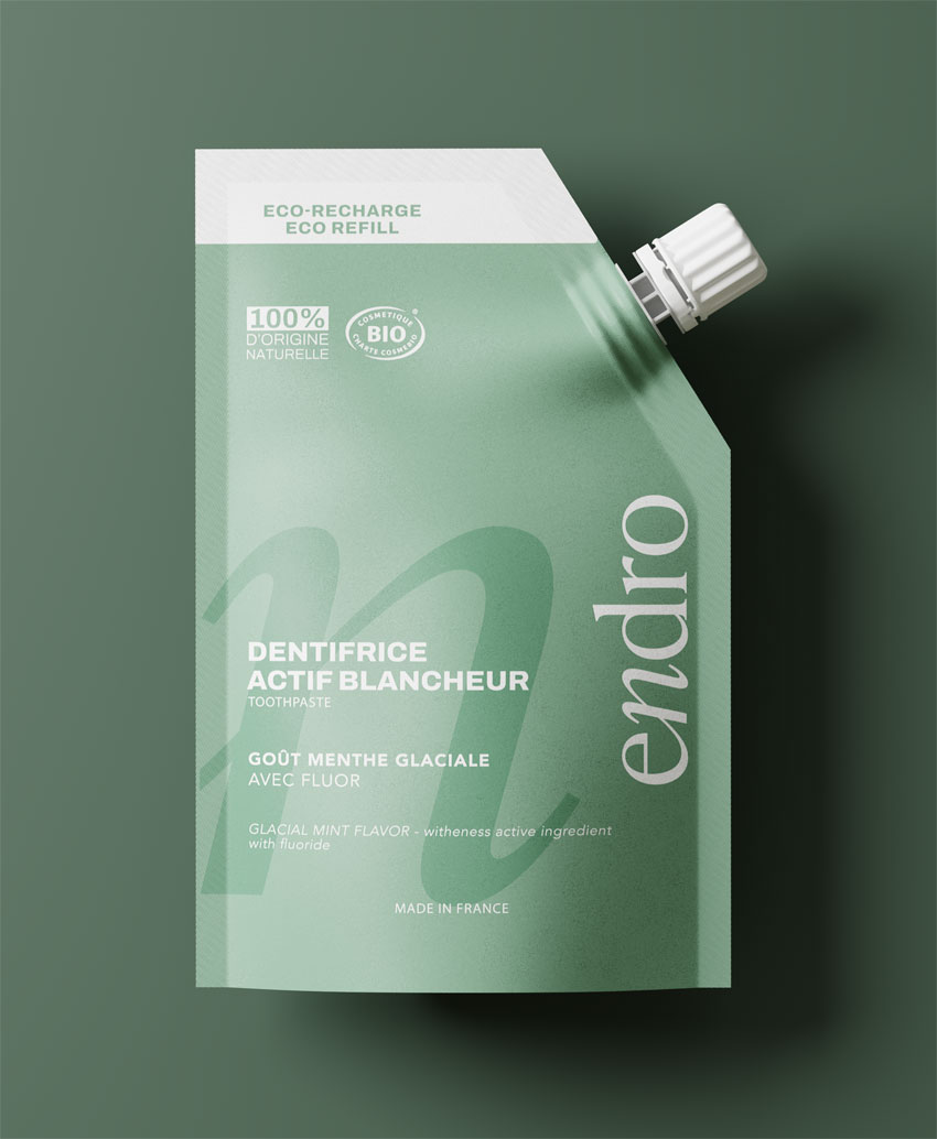 Ευέλικτη, 100% ανακυκλώσιμη και ελαφρύτερη στη μεταφορά, αυτή η μορφή επιλέχθηκε μεταξύ των πιο βιώσιμων επιλογών που διατίθενται σήμερα - σε αντίθεση με τα πλαστικά σωληνάρια (7other) που δεν μπορούν να ανακυκλωθούν. Σας επιτρέπει να ξαναγεμίζετε το επαναγεμιζόμενο μπουκάλι σας δύο φορές και αποφεύγει τη χρήση 5 σωληναρίων μιας χρήσης.