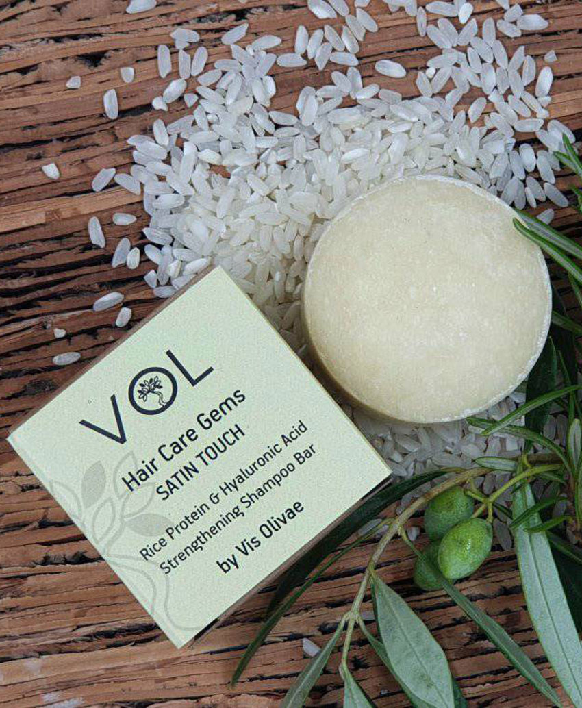 Εμπλουτισμένο με Καλαματιανό ελαιόλαδο και δαφνέλαιο, θρεπτικό βούτυρο καριτέ και ενδυναμωτικές πρωτεΐνες ρυζιού, αυτό το στερεό σαμπουάν μεταμορφώνει τα θαμπά, φριζαρισμένα ή ταλαιπωρημένα μαλλιά σε λεία και φωτεινά.