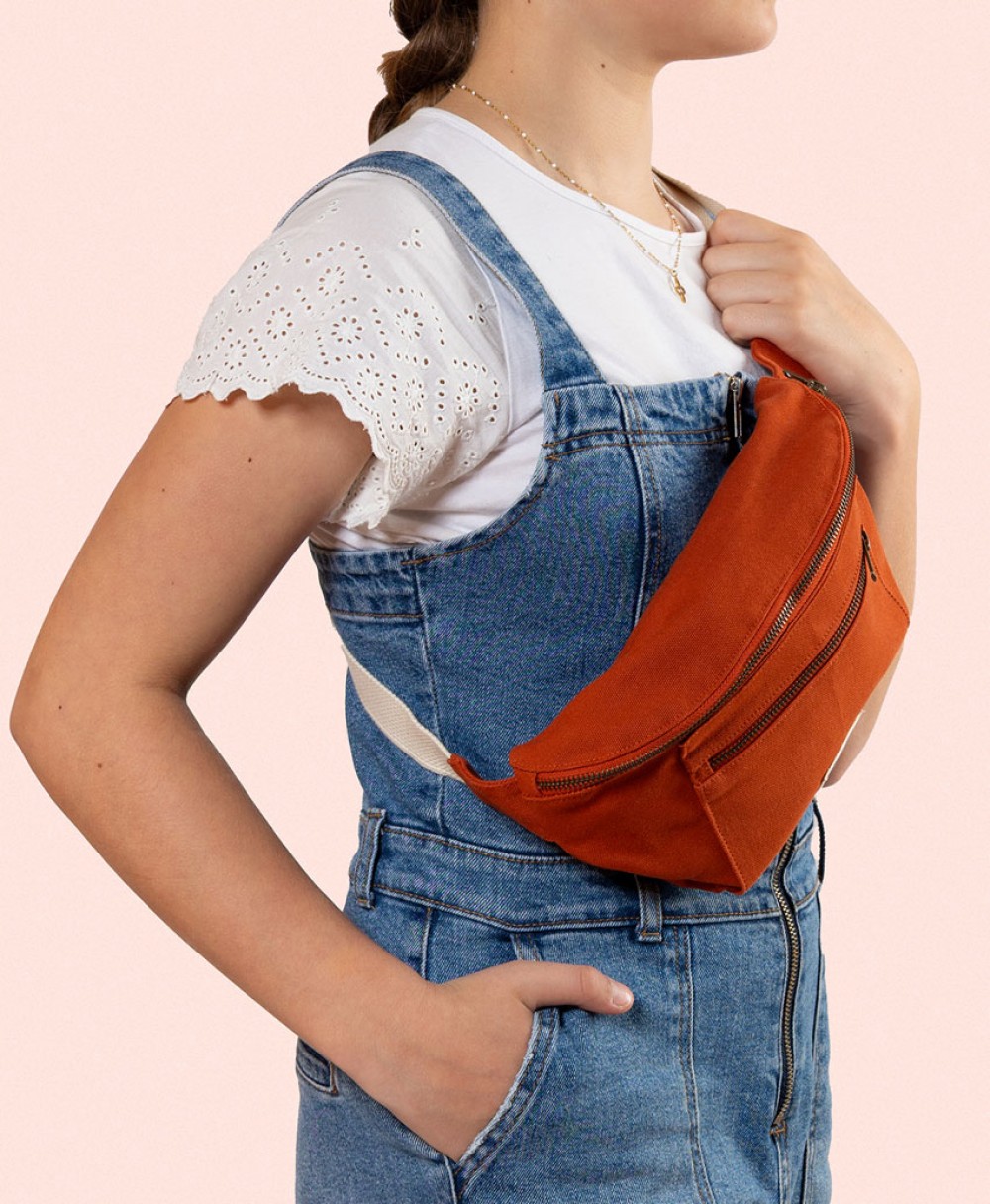 Μια στιβαρή και λειτουργική τσάντα μέσης κατασκευασμένη από οργανικό βαμβακερό καμβά, σχεδιασμένη για να μεταφέρει τα κλειδιά, το τηλέφωνο και το σημειωματάριό σας με απλότητα και στυλ κάθε μέρα. Αυτή η εξαιρετικά λειτουργική τσάντα μέσης διαθέτει δύο εξωτερικές τσέπες (η μία με φερμουάρ στο μπροστινό μέρος) και ένα εσωτερικό καραμπίνερ για την τοποθέτηση κλειδιών.